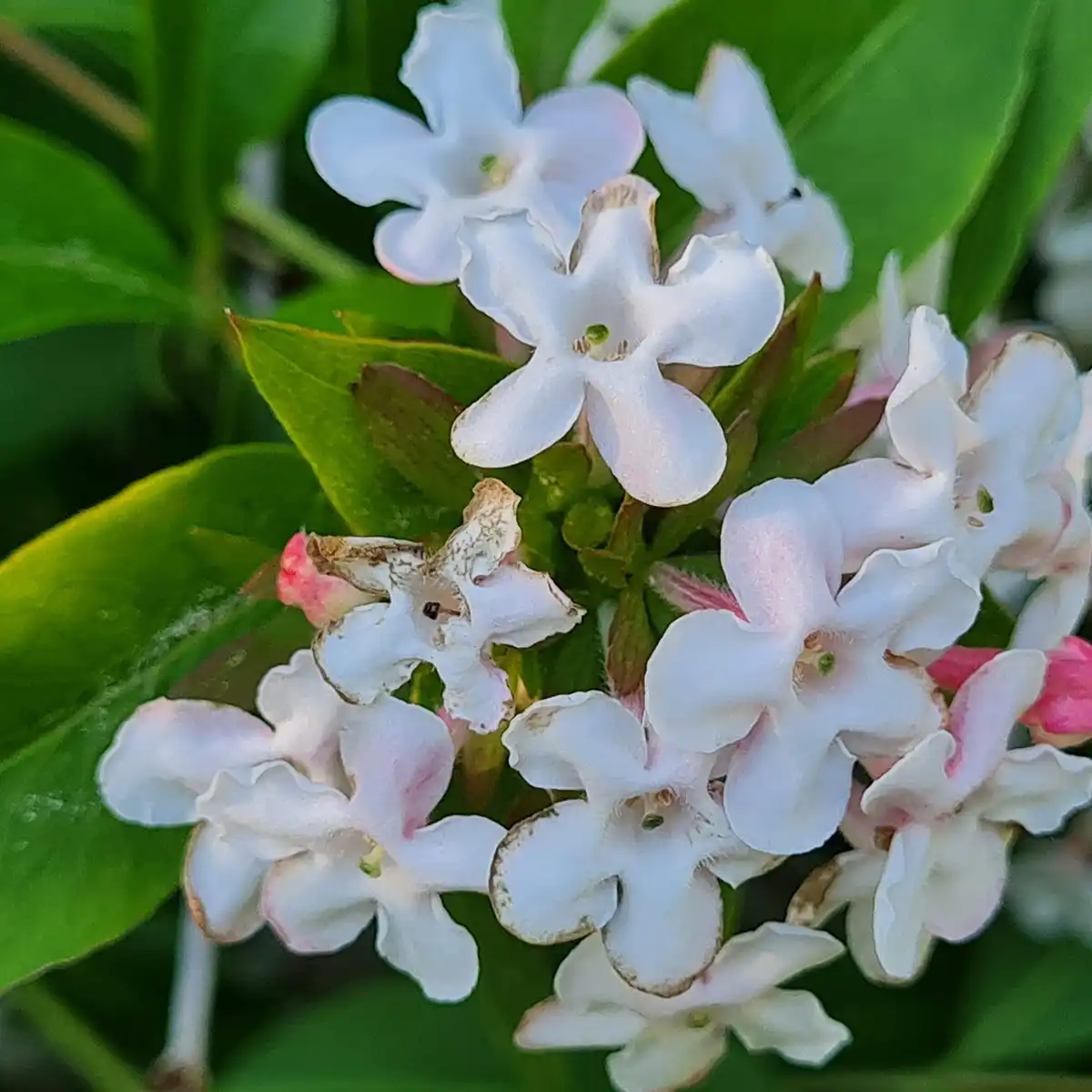 Latem i jesienią pojawiają się drobne, białe lub delikatnie różowe kwiaty, które pięknie kontrastują z ozdobnym ulistnieniem.