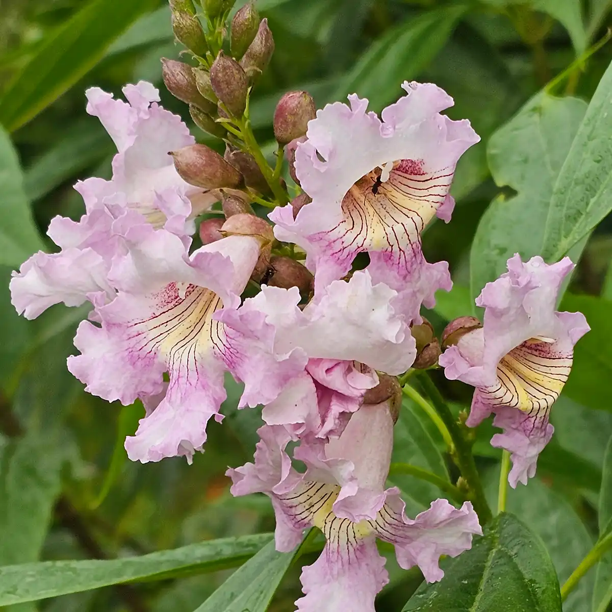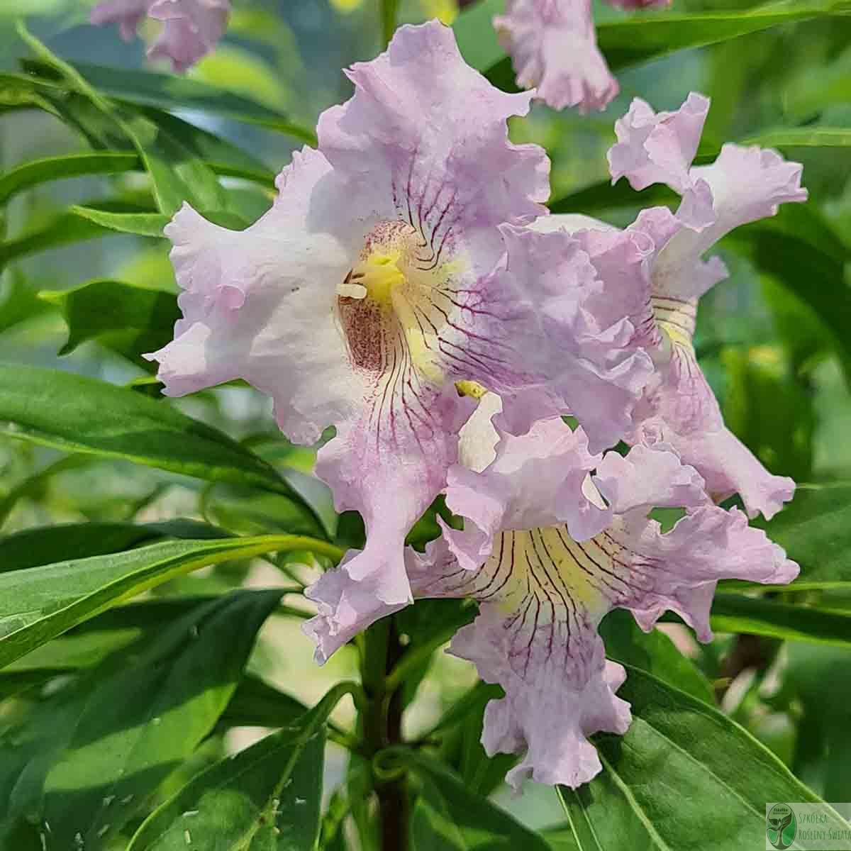 Chitalpa to niezwykła hybryda powstała ze skrzyżowania surmii z chilopsisem. Rośnie jako małe drzewo lub duży krzew, dorastając do 6–10 metrów. Charakteryzuje się drobnymi, lancetowatymi liśćmi i mnóstwem jasnoróżowych, lejkowatych kwiatów, które przypominają kwiaty surmii, ale są drobniejsze i bardziej liczne. Kwitnie bardzo długo – nawet od czerwca do września. Idealna do ogrodów w cieplejszych rejonach Polski.