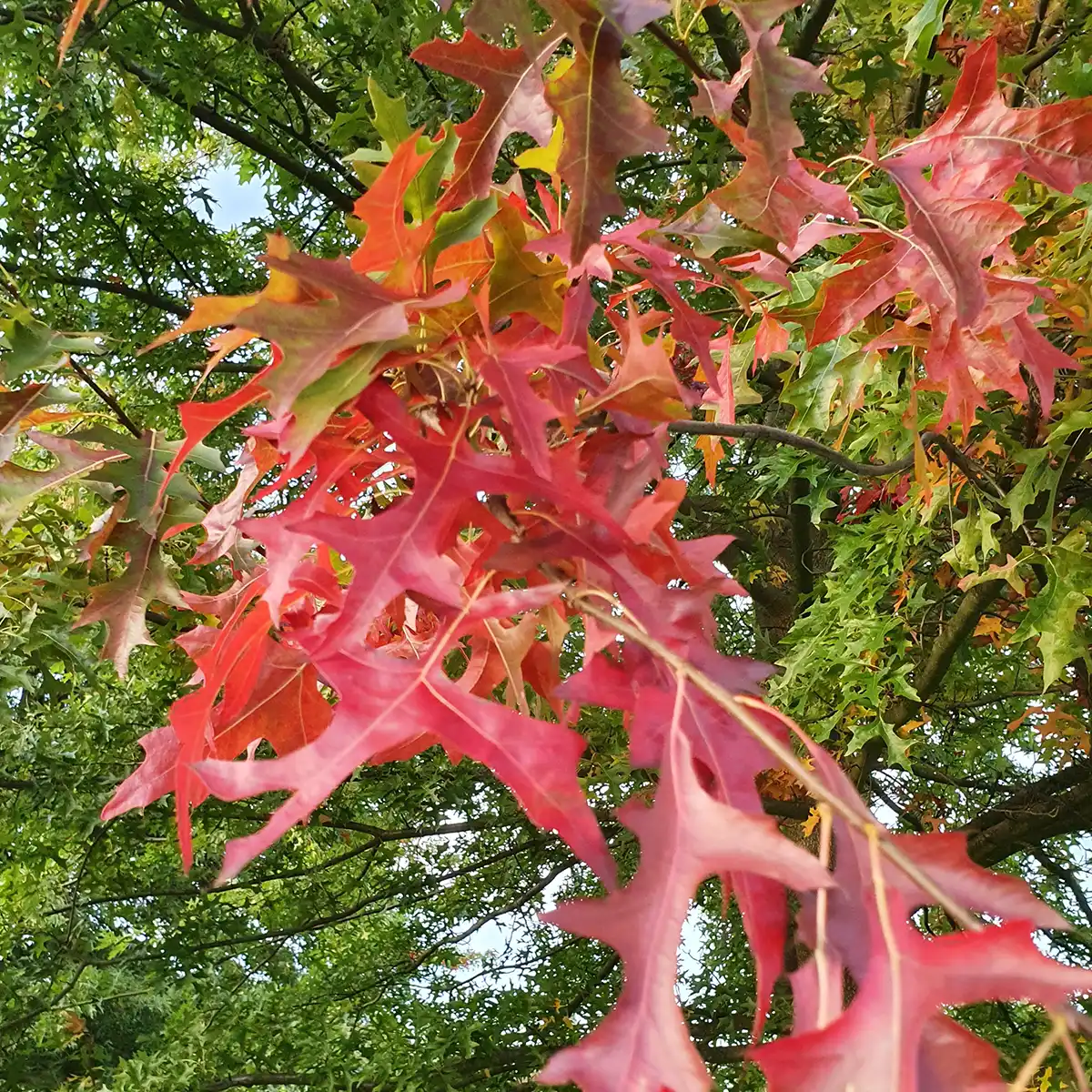 Dąb niedźwiedzi to niskopienny, szeroko rozgałęziony krzew lub niewielkie drzewo o gęstym pokroju i liściach przypominających ostrokrzew – sztywnych, z kolczastymi brzegami. Naturalnie występuje na ubogich, piaszczystych i kamienistych glebach wschodnich Stanów Zjednoczonych. Jest bardzo odporny na suszę, ogień oraz niekorzystne warunki, dlatego bywa stosowany w rekultywacji gleb i na trudnych stanowiskach. Jesienią liście przebarwiają się na intensywny czerwony kolor, co czyni go dekoracyjnym akcentem w ogrodach naturalistycznych. To gatunek dla kolekcjonerów i miłośników dzikiej flory.