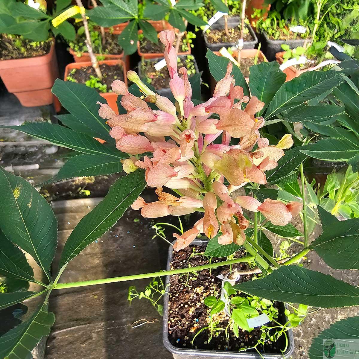 Kasztanowiec krwisty to mniejsze drzewo (od 4 do 7 metrów wysokości), które wyróżnia się intensywnie czerwonymi kwiatami, które pojawiają się wiosną. Kwiaty są zebrane w gęste, wzniesione kwiatostany, a po ich przekwitnięciu drzewo tworzy owoce w postaci brązowych, kolczastych kul. Drzewo to charakteryzuje się ciemnozielonymi liśćmi, które w jesieni przybierają żółte i pomarańczowe barwy. Kasztanowiec krwisty jest doskonały do ogrodów i parków, a jego intensywnie czerwone kwiaty stanowią wspaniałą ozdobę wczesnej wiosny. Jest odporny na mrozy i preferuje gleby przepuszczalne, wilgotne.