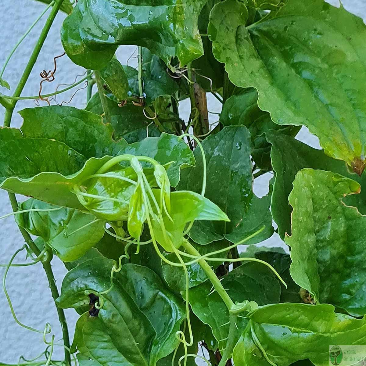 Kolcorośl szczeciniasta (Smilax hispida) to roślina o charakterystycznym wyglądzie, która przyciąga uwagę swoimi błyszczącymi, ciemnozielonymi liśćmi oraz ozdobnymi, ciernistymi pędami.