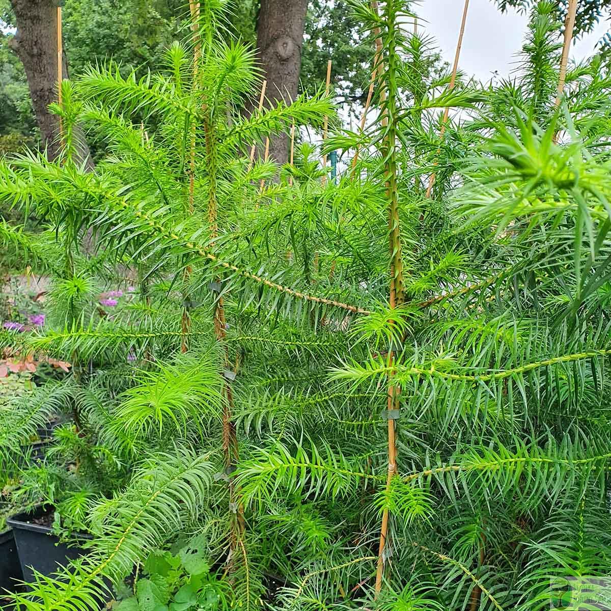 Wiecznie zielone, iglaste drzewo z rodziny cyprysowatych, naturalnie występujące w Chinach. Przypomina nieco cedra lub metasekwoję – jego miękkie, błyszczące igły ustawione są spiralnie. To jedno z nielicznych iglastych drzew tropikalnych, które dobrze radzi sobie w cieplejszych rejonach Polski. Nadaje ogrodowi wyjątkowy, azjatycki klimat. W chłodniejszych rejonach wymaga stanowisk osłoniętych.