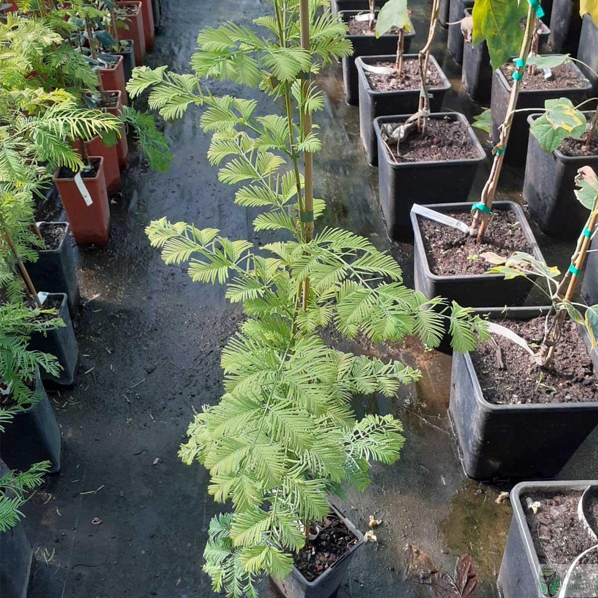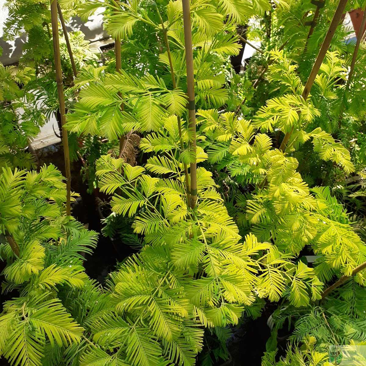 „Żywa skamieniałość” – uważana za wymarłą, została odkryta ponownie w latach 40. XX w. To drzewo iglaste, ale zrzucające igły na zimę! Ma korę łuszczącą się w pionowe pasy i delikatne, pierzaste igły. Bardzo szybko rośnie i nadaje się do wilgotnych ogrodów i parków.