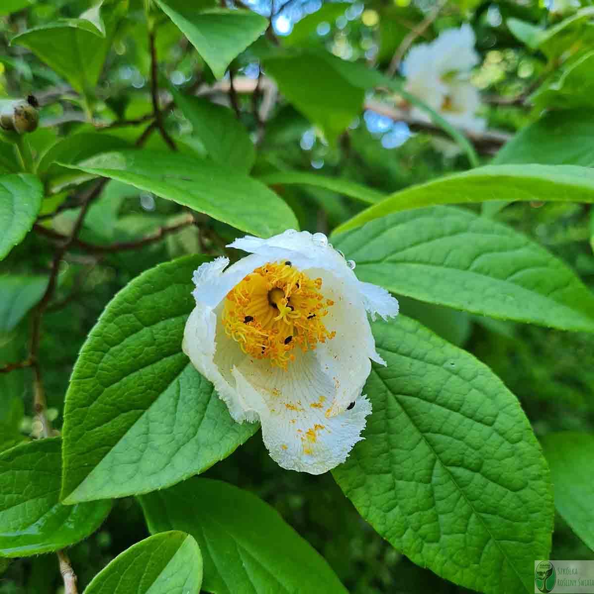 Niewielkie drzewo z USA o białych kwiatach z pomarańczowym środkiem i pięknych, szerokich liściach. Rośnie powoli, ale jest niezwykle dekoracyjna zarówno w czasie kwitnienia, jak i jesienią, kiedy liście przybierają intensywnie czerwone barwy.