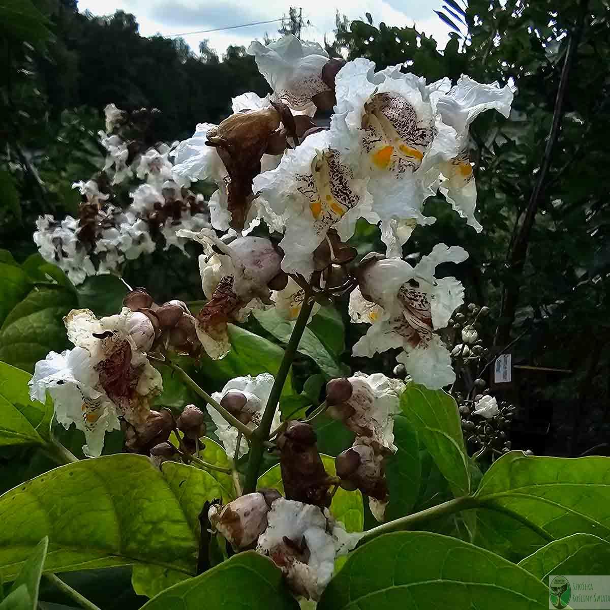 Surmia wielkokwiatowa to jedno z najbardziej efektownych drzew ozdobnych pochodzące z Ameryki Północnej. Charakteryzuje się dużymi, sercowatymi liśćmi oraz pięknymi, pachnącymi, kremowobiałymi kwiatami z żółto-purpurowym rysunkiem, które pojawiają się późną wiosną. Jej luźna, szerokostożkowata korona nadaje ogrodowi egzotyczny klimat, a długie, wąskie strąki nasienne dekorują drzewo również zimą. Nadaje się do większych ogrodów i przestrzeni publicznych. Działa miododajnie, przyciąga pszczoły i motyle.